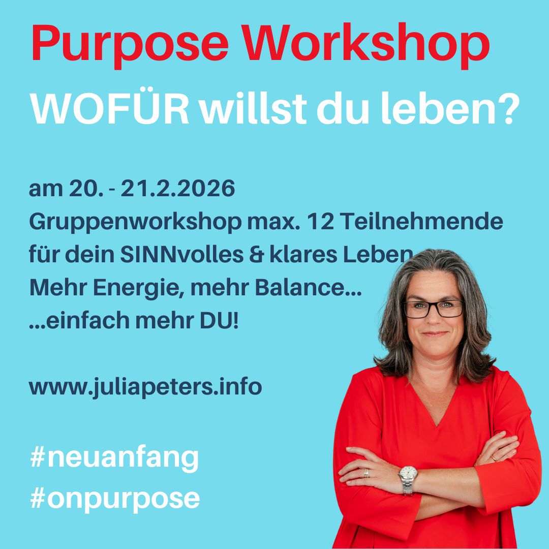 OnlineWozu Purpose Coaching? Du suchst Sinn und Fokus – im Beruf, Ehrenamt oder Privatleben. Dein Purpose zeigt dir, wo deine Energie wirklich wirkt. Du willst klar und authentisch führen – auch unter Druck. Mit Purpose triffst du Entscheidungen, die zu dir passen, und gewinnst Motivation und Wirksamkeit. Das wirkt auch auf dein Team. Purpose gibt dir Klarheit und Orientierung – für die Frage: „Wofür stehe […]